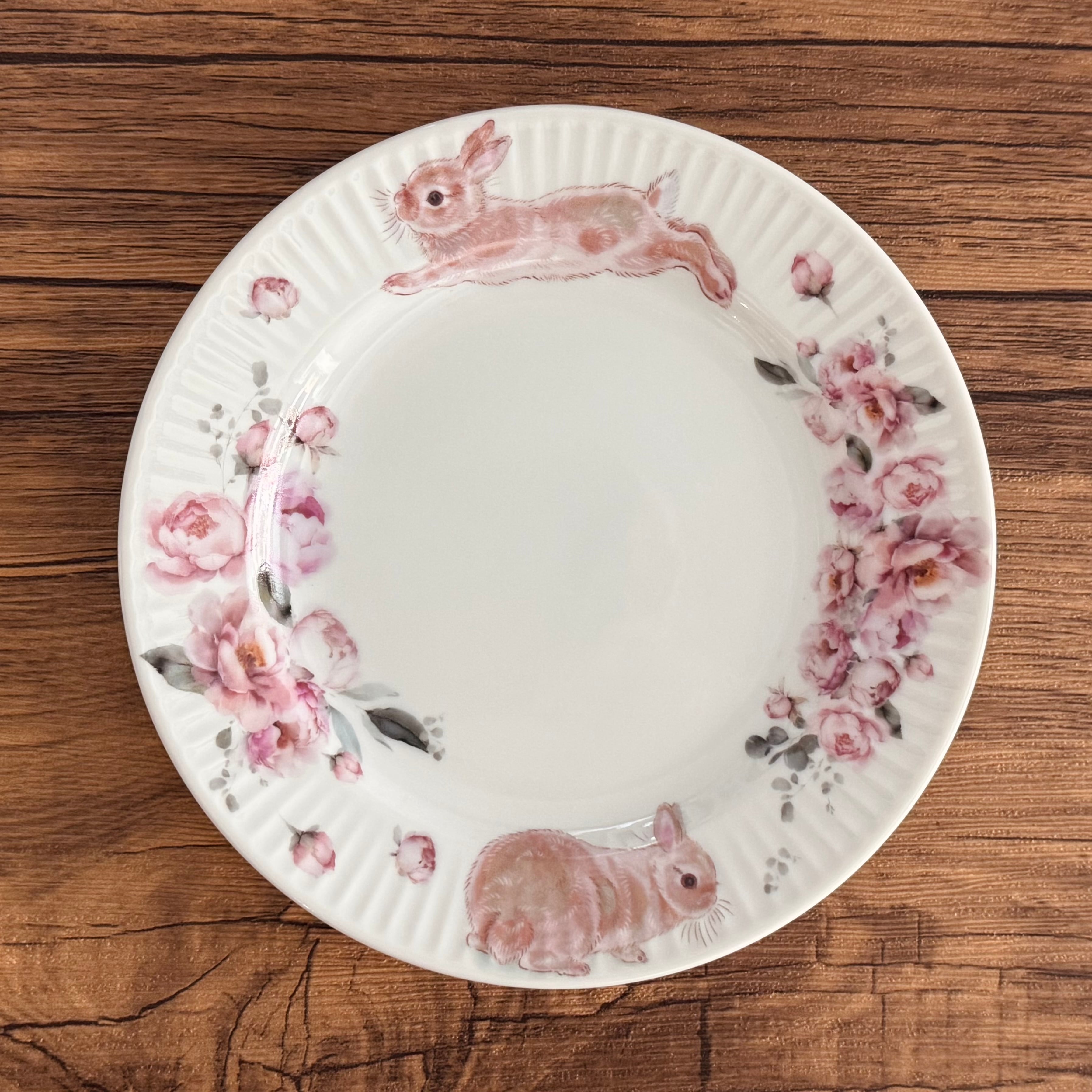 オリジナルのうさぎイラストの転写紙を使用したポーセラーツ作品です。