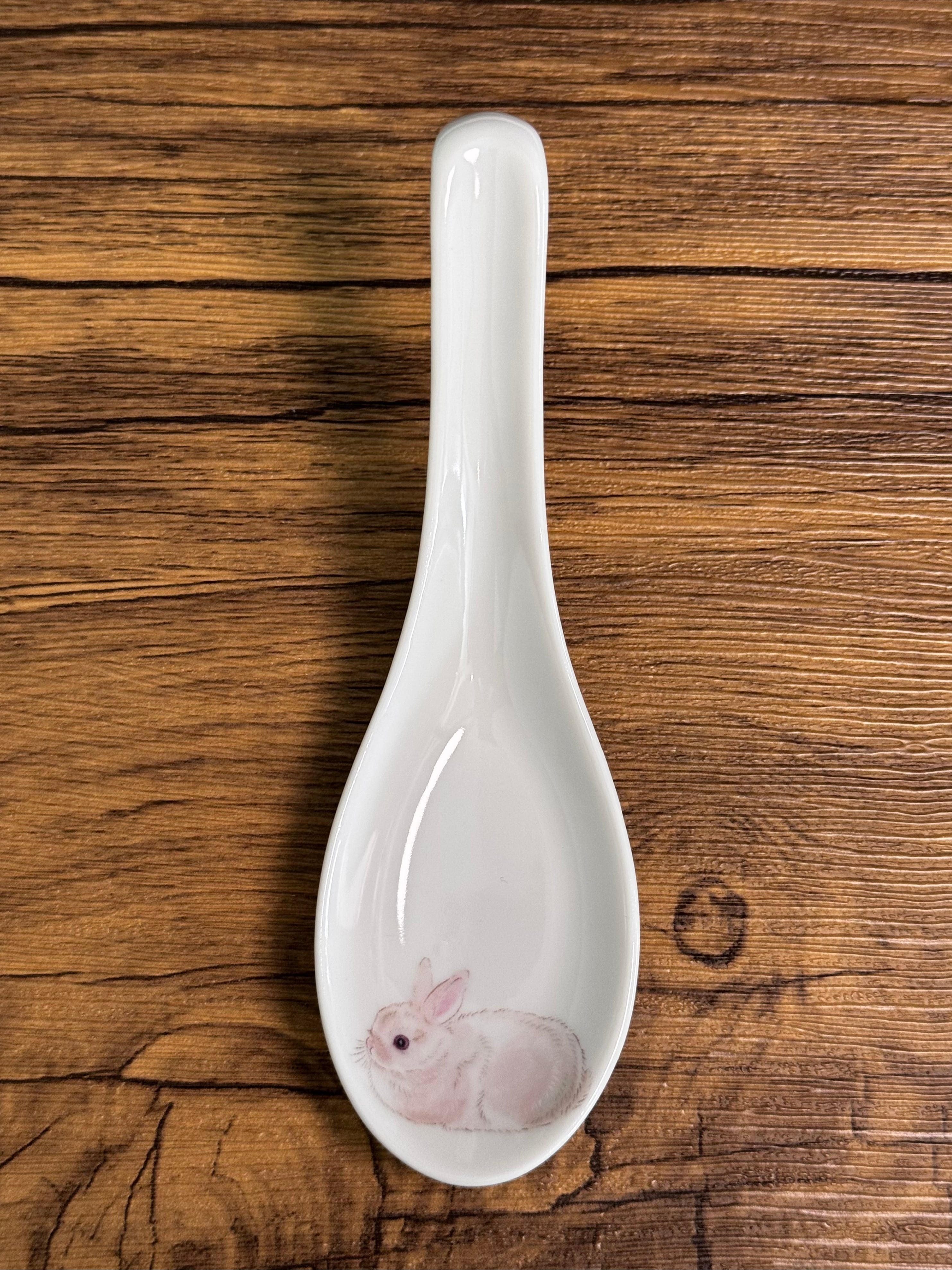 オリジナルのうさぎさんイラストの転写紙を使用したポーセラーツ作品です。