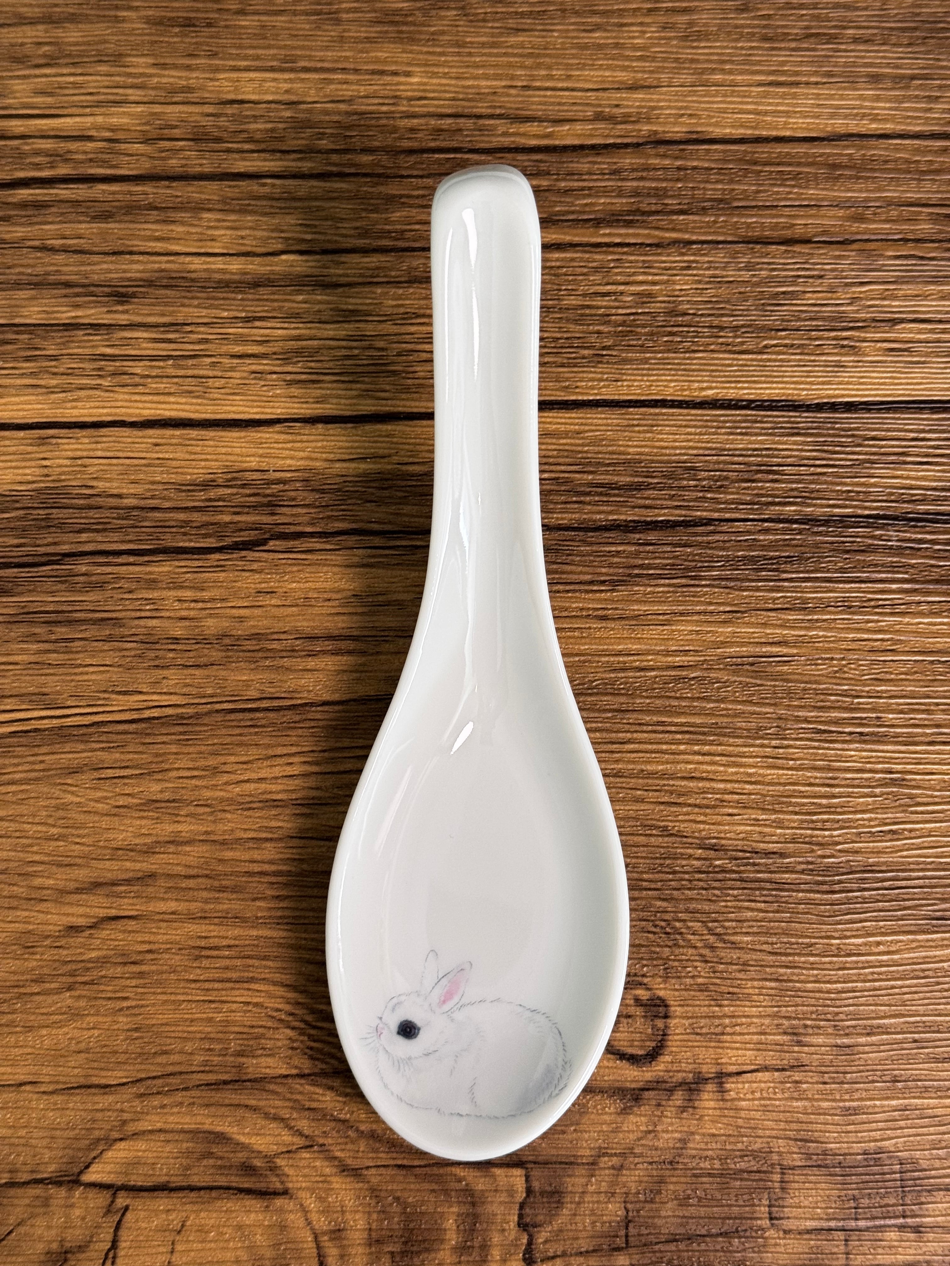 オリジナルのうさぎさんイラストの転写紙を使用したポーセラーツ作品です。
