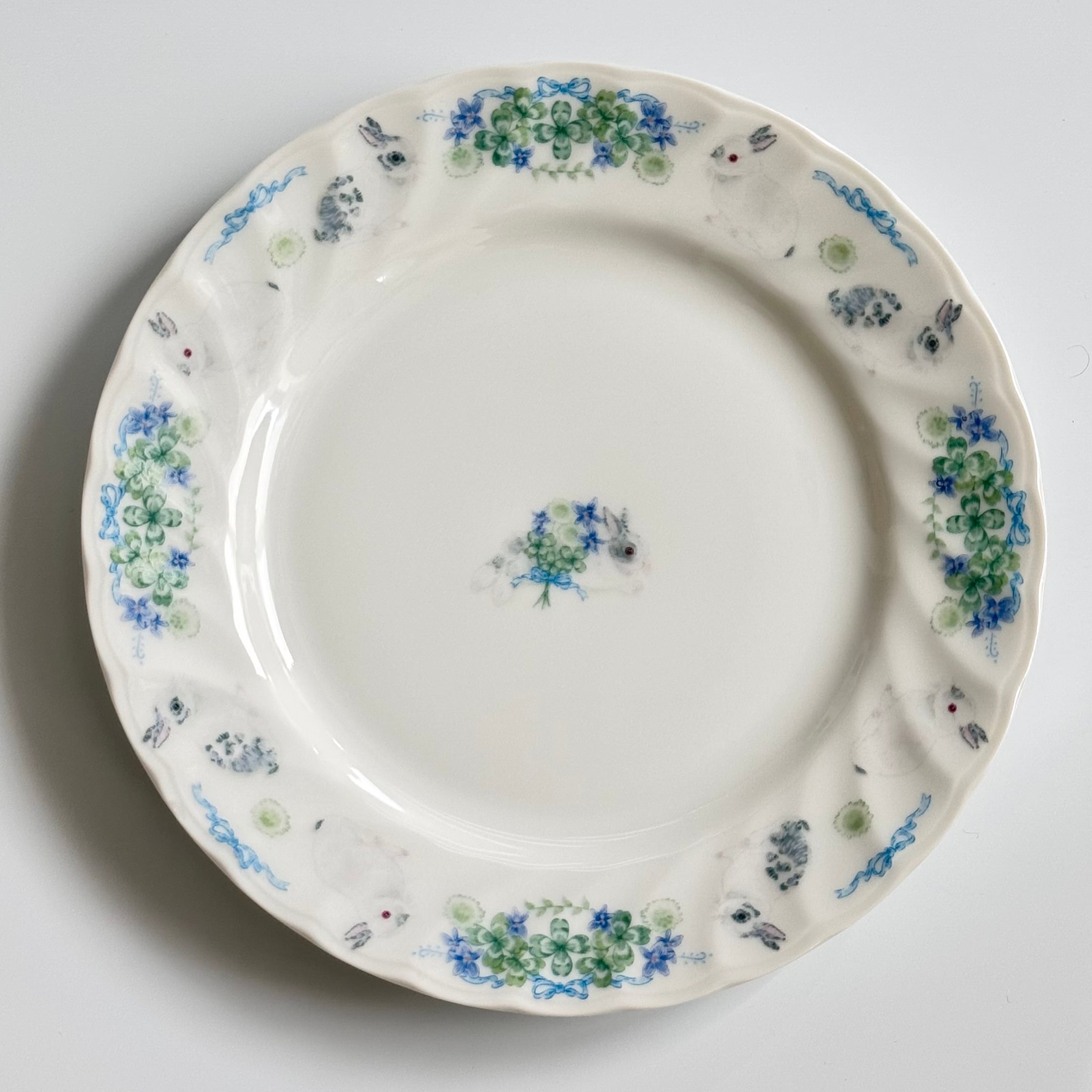 オリジナルのうさぎイラストの転写紙を使用したポーセラーツ作品です。